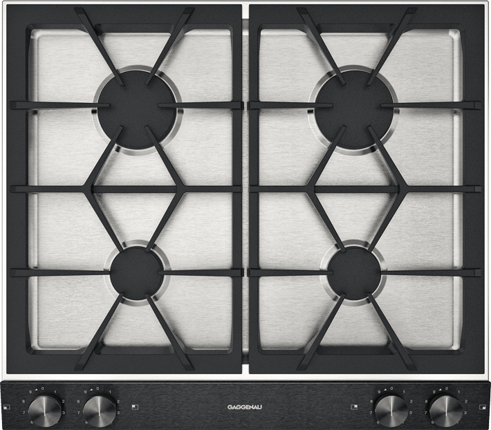 Четырехконфорочная панель шириной 60 см оборудована двум стандартными горелками и двумя горелками повышенной мощности.