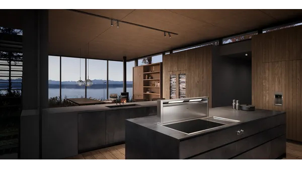 - вытяжкой через варочную панель (вытяжка должна быть совместима с варочной панелью).